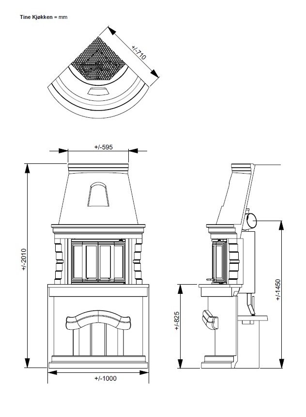 Печь-камин Tine кухонный (топка NI-22 складные дверцы)