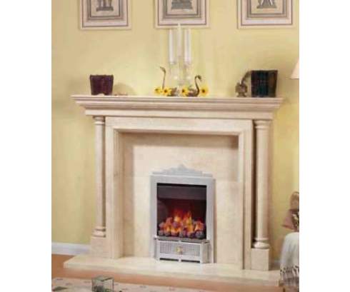 Этот классический портал выполнен целиком из мрамора бежевого цвета. По бокам эта аккуратная модель украшена изящными колоннами.